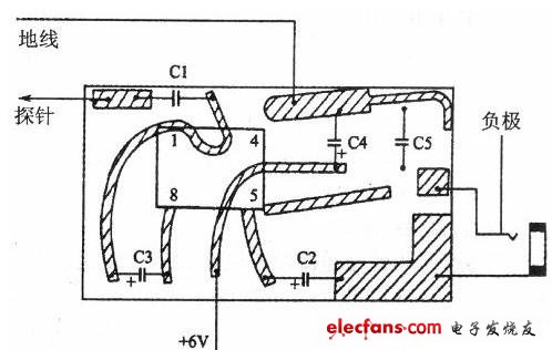 电路原理如上图所示。Cl为隔直电容;C2是输出电容;C3的作用是防止自激;C4是电源滤波电容。