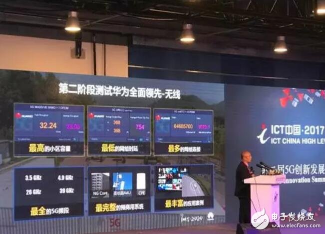 最高的小区容量:在C波段测试中,华为200MHz带宽下,小区下行峰值速率超过32Gbps,刷新了行业记录。华为在测试中率先集成了所有5G关键新空口技术,包括:新波形技术(f-OFDM),新型编码(如PolarCode),新参数集、新帧结构、大规模天线,新型多址(SCMA),这是继第一阶段测试中验证的华为提出的多项技术成为3GPP标准核心技术后,再次以第二阶段测试取得全面领先的成绩展现出华为在技术创新上的优势。