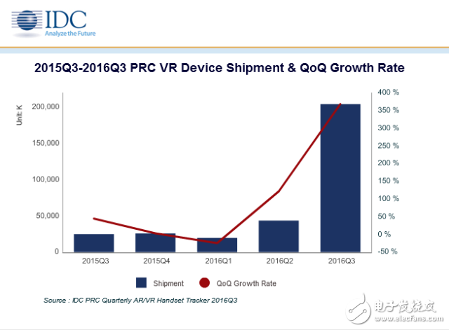 摘要:IDC中国数据显示,2016年第三季度,中国VR市场出货量为20.4万台,环比增长367.9%。从2015年第三季度到2016年第一季度, VR市场环比增长乏力,主要是由于国际VR品牌宣布即将进入中国市场,消费端...