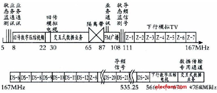 摘要:此频率分割配置适合大型综合业务网,上行通路较5-30MHz扩展35 MHz,为开展交互业务提供可能;下行能路有58个模拟电视频道可供使用,同时提供了104MHz的下行数字压缩电视的频率空间。...