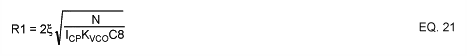 The charge pump output of the PLL pulses at the phase comparison frequency determined by R and the external crystal oscillator. A loop filter is employed to filter these pulses into a constant DC-control voltage for the VCO. The third-order loop filter (Figure 2) consists of C7, C8, C9, R1 and R2. Use simplified EQ. 17 to 23 to calculate the component values.