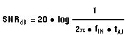Clock-signal function generator: Hewlett-Packard HP8662A. The clock input for the device under test (DUT) accepts CMOS-compatible clock signals. This signal should have low jitter and fast rise and fall times, because the high-speed ADC has a 10-stage pipeline, and its interstage conversion depends on the repeatability of the rising and falling edges of the external clock. Sampling occurs on the falling edge of the clock signal, so edge should have the lowest possible jitter. Significant aperture jitter limits the ADC's SNR performance as follows: