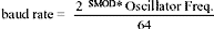As mentioned, the illustrated mode of generating a baud rate does not involve a timer (i。e。, serial mode 2). The baud rate is selectable as shown in the following equation: