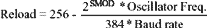 After establishing the timer's mode of operation, the reload value must be stored in the reload register. The contents of the reload registers may be calculated for a desired baud rate and oscillator frequency using the following equation: