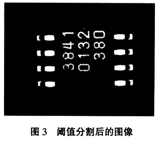 中值滤波后的图像达到了较好的去噪目的,再进行阈值分割处理。图像阈值分割是一种广泛使用的基于空间域聚类分析的图像分割技术,它主要是利用图像中要提取的目标和背景在灰度特性上的差异,选择一合适的阈值,通过判断图像中的每一个像素点的特征属性是否满足阈值要求来确定图像中该像素点属于目标还是应该属于背景,从而产生相应的二值图像。由于本系统是在高速运转的流水线上工作,要求有很高的实时性,所以采取了两种动态阈值分割方法,即类间方差阈值分割和最大熵阈值分割来实现图像的分割,这两种方法是利用目标图像的直方图具有典型的双峰特性,利用概率论和最大熵的理论,自动确定一个最佳的阈值,对图像进行二值化,在本文中的对象经过中值滤波后得到的图像的直方图就满足双峰特性,所以采取上述两种方法对图像进行处理,得到二值化图像。