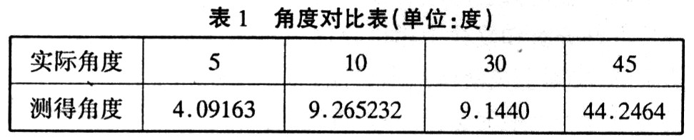 改进后的算法的计算量要比原算法少了很多,实时性更强,因而它的实用性更强。为了测试程序测得角度的准确性,用Photoshop对原图像进行了旋转,角度分别为5,10,30,45,90度,以下是角度识别对比表。