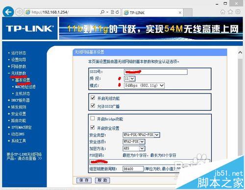 2、进到无限网络设置菜单设置好SSID,频道,加密类型(wpa最安全哦),密码等信息。