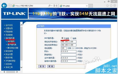 3、进入DHCP菜单,手动关闭DHCP功能,保存成功,重启路由器待用。