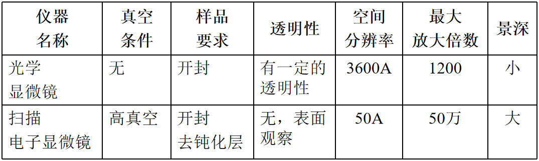 用来观察光学显微镜下观察不到的细微结构,如观察芯片击穿点的立体形貌,针孔等